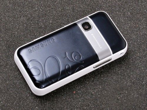 三星F258的前面板整体应用镜面效果,2.0英寸显示屏幕略显窄小,导航键与功能键在滑盖滑开之前是前面板的全部控制键,没有挂断和接听键,不过,五向键有音乐操作功能,明确显示了F258音乐手机的定位。